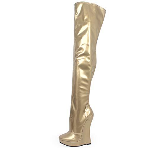TIKENBST Tacchi Donna Tacchi Alti 18CM Piattaforma con Zeppa Stupendi Stivali Unisex Sottili sopra Il Ginocchio,Gold-45