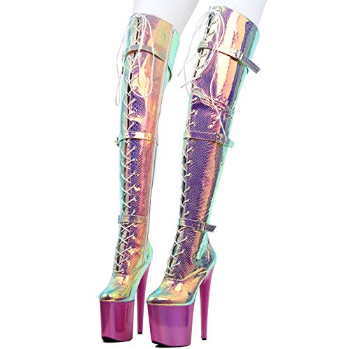 TIKENBST Tacchi Donna Tacchi Alti 20CM Stampa Serpente sopra Gli Stivali al Ginocchio Piattaforma Impermeabile Stiletto Pole Dance,Pink-38