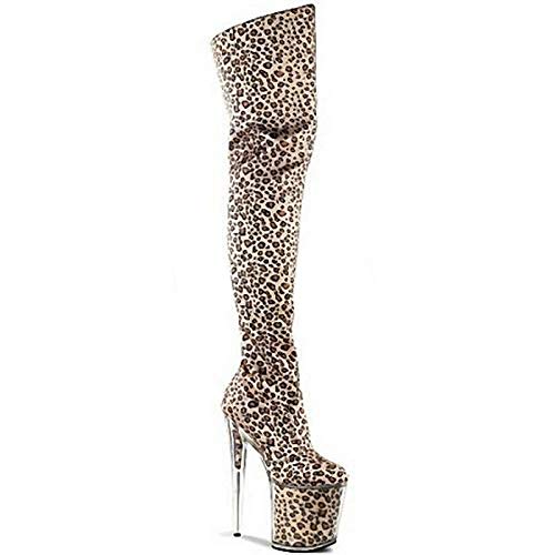 TIKENBST Tacchi Donna Tacchi Alti 20CM Stivali in Cristallo con Prestazioni Eccellenti sul Palco Stampa Leopardata sopra Gli Stivali al Ginocchio,Leopard-39