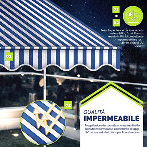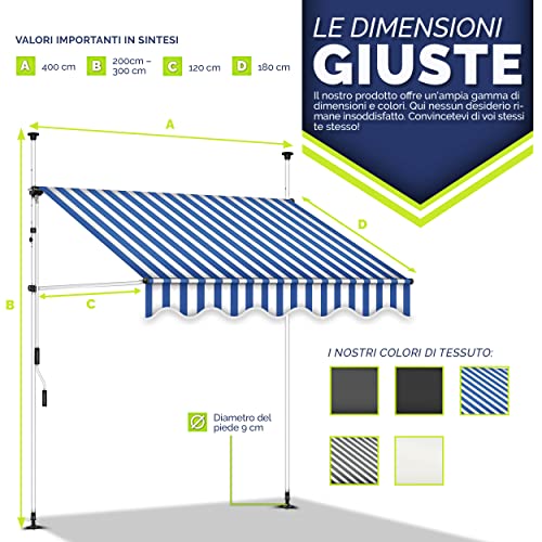 A CIASCUNO LA SUA ALTEZZA: La manovella in dotazione consente una regolazione dell'inclinazione e dell'altezza (200-300cm) e una protezione solare perfetta. La nostra tenda per terrazza può essere estratta sia in diagonale che in verticale. L'avvolgimento completo della tenda consente anche di riporla in poco spazio.