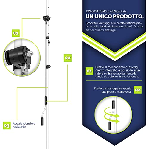 ADATTA PER OGNI SPAZIO: La tenda per balcone tillvex è la protezione perfetta dagli sguardi indiscreti per il balcone, la terrazza, il giardino o la veranda. Si protegga con una copertura per la terrazza da un improvviso temporale estivo, dai raggi UV e dai riflessi del sole.