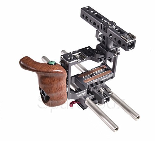 Tilta ES T27 a Sony Alpha A6000 A6300 A6500 ILCE-7 6300 ILCE-7 6500 Camera Lightweight Rig Cage 15 mm Rod Release BasePlate Top Handle + Wooden Handle & # xFF08;
