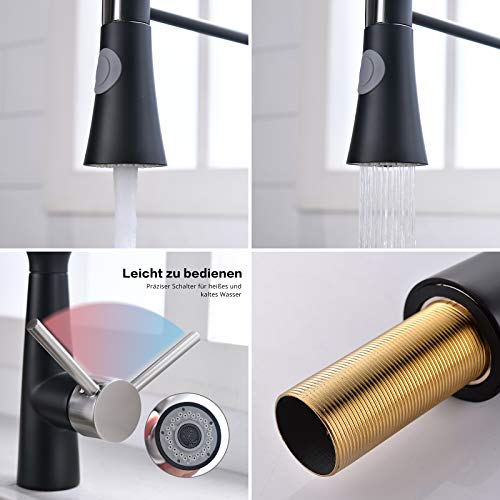 TIMACO - Rubinetto da cucina girevole a 360°, miscelatore mobile con molla a spirale, ad alta pressione, colore nero, in nichel spazzolato
