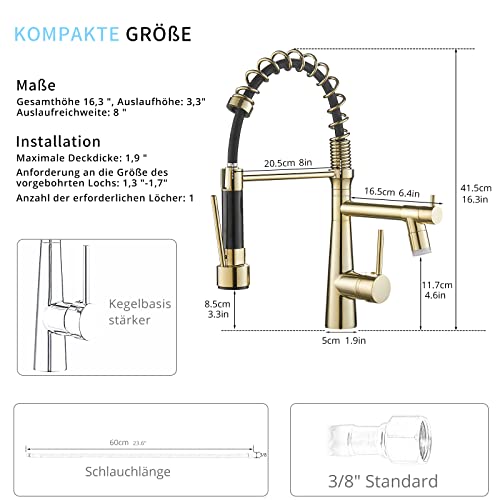 Design pregevole: il nostro rubinetto da cucina con doccetta mobile è stato progettato con linee pulite e un aspetto sottile, che lo rende un accessorio senza tempo e alla moda per la vostra cucina. Il nostro ottimo design è durevole, molto efficiente, a tenuta stagna e, grazie alla sospensione con molla a spirale mobile con doccetta e rubinetto, offre possibilità di utilizzo flessibili.