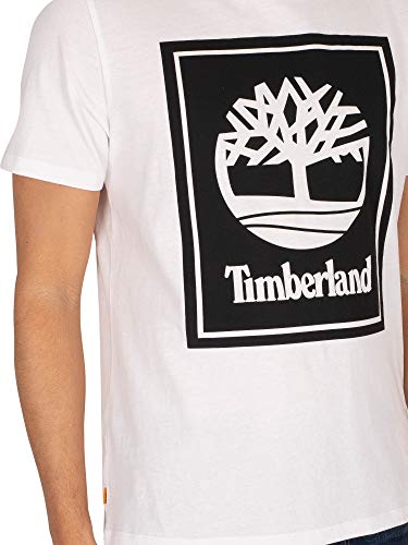 Timberland SS Front Stack Logo Tee T-Shirt, White/Black (Bianco, Nero), S Uomo