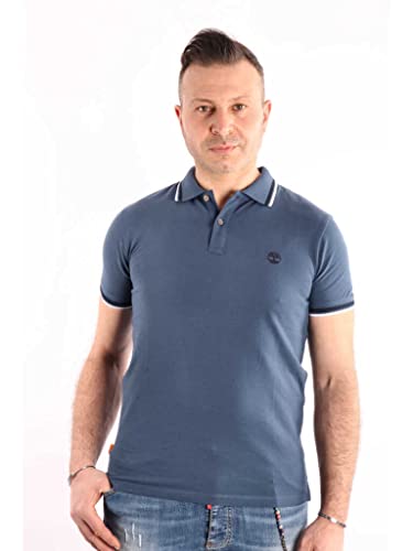 Timberland Polo Manica Corta Millers River Collar Print (L, Dark Denim)