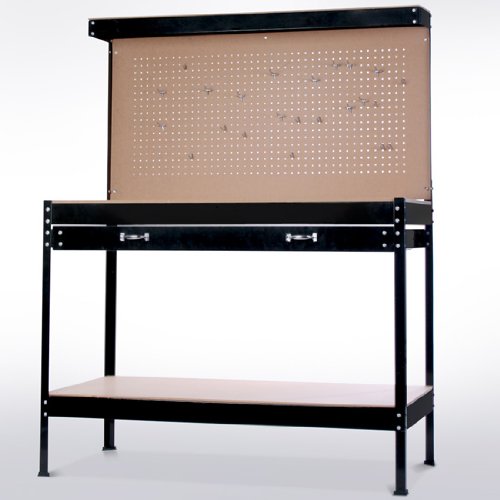 Pratico banco da lavoro per attrezzi con parete a fori