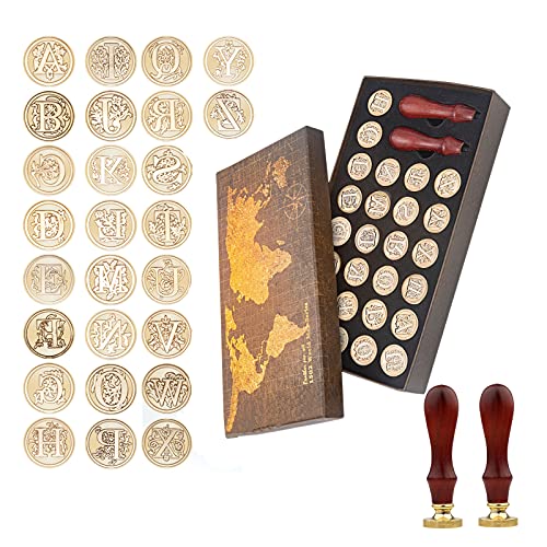 Set di timbri in cera, 8 pezzi Timbro con sigillo in cera Testine in ottone e 1 pezzo Manico in legno per ceralacca Regalo per busta Etichetta per cartoline Invito a nozze (26PCS)