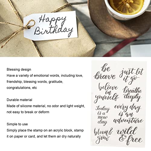Timbro con Parole di Auguri, Timbro in Silicone Trasparente Riutilizzabile, Semplice da Usare, 2 Fogli, Durevole, Leggero, per Creare Cartoline e Scrapbooking Fai da Te