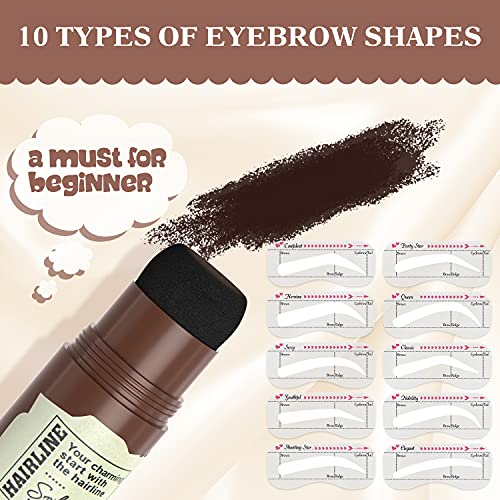 Timbro per sopracciglia, riutilizzabile e con 10 stencil e pennello per trucco, 3 in 1 per eyebrow Stamp, perfetto per la modellazione delle sopracciglia