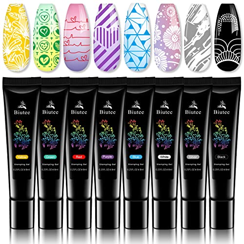 Timbro per Unghie-Biutee Nail Art Stamper Set di 8 Colorate Gel per Unghie+10Template Piastra