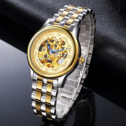 TIME100 Orologio Automatico Scheletrato Resistente All'acqua Lucidato a Mano Elegante#W60015G.01AN