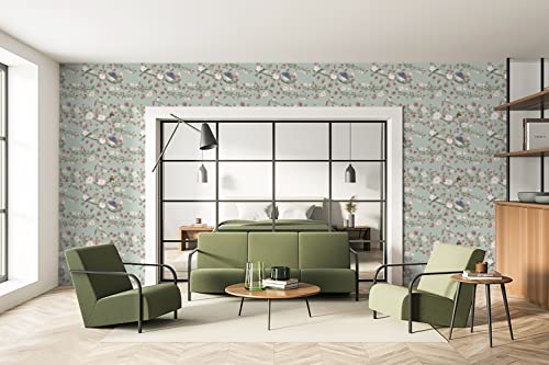 【Colore fresco】La carta da parati della natura ha un motivo fresco e dall'aspetto naturale stampato con uccelli intelligenti che si incontrano su un albero di pesco rosa chiaro.Questa decalcomania da parete decorativa è giocosa e carina, portando un'atmosfera vivace e interessante a casa tua.