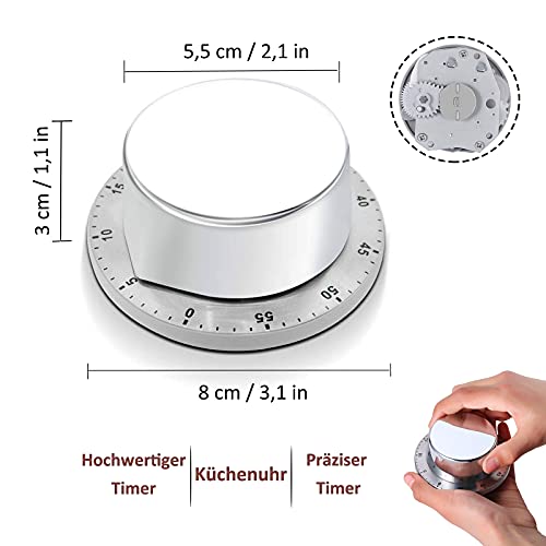 Timer, Timer per Uova in Acciaio Inossidabile, Orologio da Cucina Magnetico Meccanico, Timer per Cucinare, Cuocere al Forno, Sport, Studiare