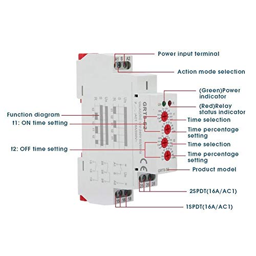 Timer ciclo, AC/DC 12-240V GRT8-S2 Mini Asimmetrico Ciclo Timer ON/OFF Ripetizione del tempo di ciclo Relè grt8-s2