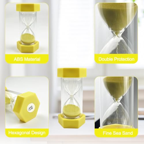 ✔[CLESSIDRA ANTIURTO] La clessidra è realizzata in PVC di alta qualità, vetro borosilicato di alta qualità, sabbia di alta qualità e guscio protettivo. Il timer per la sabbia è durevole, non si rompe facilmente, sicuro e non tossico.
