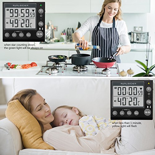 Timer da cucina digitale, timer di allarme, timer di cottura, timer da cucina, grande display a LED, memoria flash allarme Lab Learning Contest Cooking beauty, bianco e nero Nero
