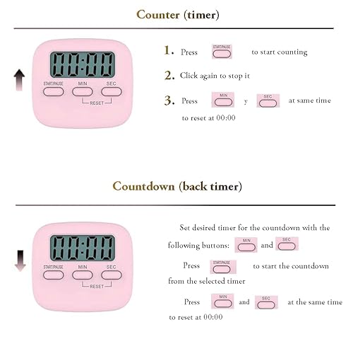 ⭐ Piccolo ed elegante ⭐ Usa il timer tramite il pulsante Start/Pause e regola il timer tramite i pulsanti min/sec. Allo stesso tempo, azionare i pulsanti min e sec. in una sola volta per riavviare il timer. Non preoccuparti che il tuo cibo sia troppo cotto con il timer digitale.