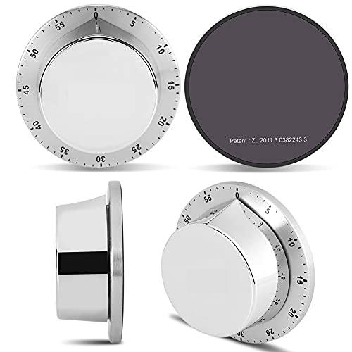 Timer da Cucina Meccanico, 1 Ora Timer Conto Alla Rovescia da Cucina Manuale Strumenti di Promemoria per la Cottura 60 Minuti Timer Cucina in Acciaio Inox con Base Magnetica(Silver)