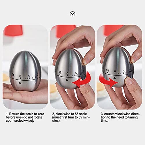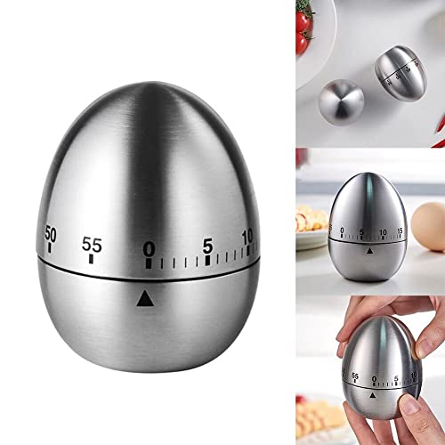 Timer Cucina, Pomodoro Timer, Meccanico Senza Pile, Max 60 Minuti, Ottimo Per Applicare La Tecnica del pomodoro (Uova Acciaio)