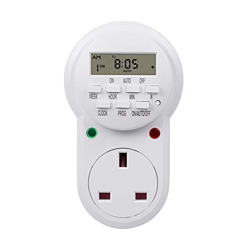 HBN 1 Timer digitale elettronico plug-in programmabile settimanalmente con display LCD 24 ore / 7 giorni, confezione da 2