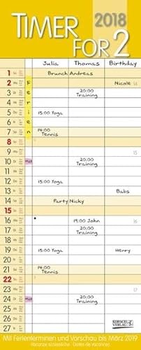 Timer for 2 Safran 2018: 3 Spalten. Familientimer mit Ferienterminen und Vorschau bis März 2019