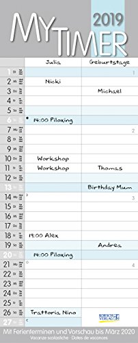 My Timer 2019: 2 Spalten. Familientimer mit Ferienterminen und Vorschau bis März 2019