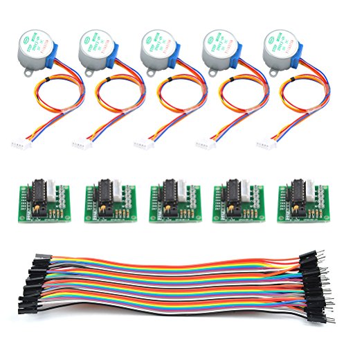 TIMESETL 11-Pezzo 5V 28BYJ-48 ULN2003 Motore passo-passo per arduino +Scheda driver+Cavi ponticelli per tagliere 20pin Dupont Wire (da maschio a femmina)
