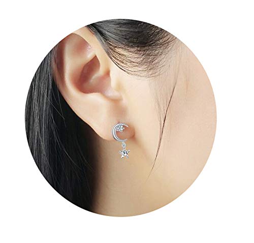 Timesuper - Orecchini a perno in argento asimmetrico a forma di stella, luna, S925