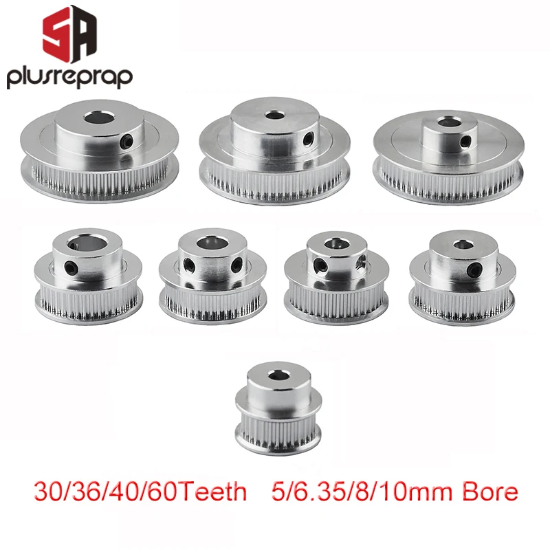 GT2 Timing Pulley 30 36 40 60 Teeth Aluminum Bore 5 6.35 8MM for Belt Width 6mm 10mm Belt for 3D Printer Reprap