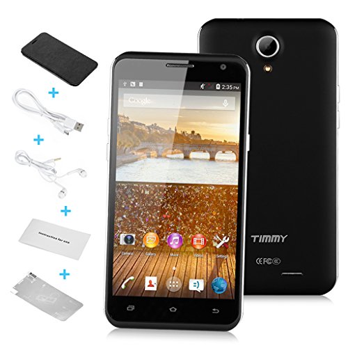 TIMMY Nuovo Smartphone 5.5 Pollici E86 Cellulare 3G Android 4.4 MTK6582 Quad Core 1.3GHz Dual SIM Dual Standby 1GB+8GB Dual Camera WCDMA/GSM GPS WIFI Bluetooth Smart Wake- Nero