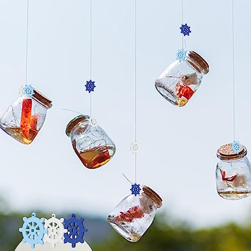 Timone Decorazioni Tavolo, LNSYSNS 100 Pezzi Decorazioni Marine Legno, Timone Della Nave Creative Home Decor 23,5 x 19 x 2mm - per Tavolo, Feste, Compleanni DIY (Blu Scuro, Azzurro, Bianco)