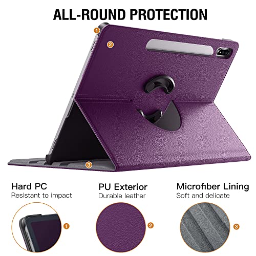 TiMOVO Custodia Protettiva Compatibile con all-New Samsung Galaxy Tab S7 Plus 12.4 inch Tablet (SM-T970/T975/T976), Cover a Rotazione 90 Gradi per Tablet, Case a Tre Sezioni, Viola