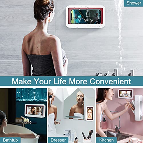 TiMOVO Custodia per Telefono Doccia Girevole 180° Compatibile coi Dispositivi Fino a 6,8 Pollici, Supporto Custodia per Telefono a Parete Impermeabile con Finestrino Trasparente Touch Screen - Bianco