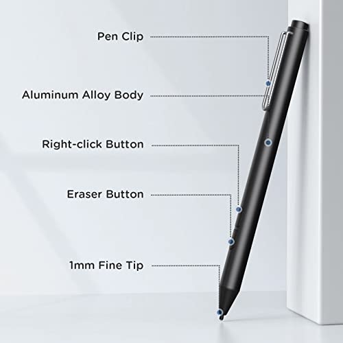 TiMOVO Surface Pen, Penna Stilo con 3 Punte di Ricambio Compatibile con Surface Pro X/9/8/7+/7/6/5/4/3, Surface Laptop 1/2/3/4, Surface Go 3/2/1/Book 3/2/1, 4096 Sensibilità alla Pressione, Nero