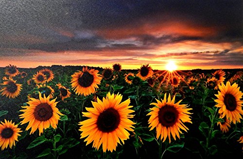 Tinas Collection parete 60 x 40 cm, immagine di lino di illuminazione con 8 lampade LED, Moderno Quadro XXL per soggiorno e camera da letto (Girasol)