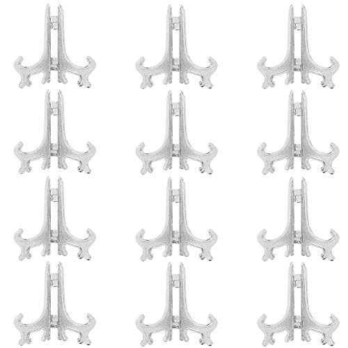 Tincogo 3" Argento Plastica Cavalletti o Piastra di Supporto/Supporti per Foto o Altri Articoli su Matrimoni, Decorazione della Casa, Compleanni, Tavoli (Confezione da 12)