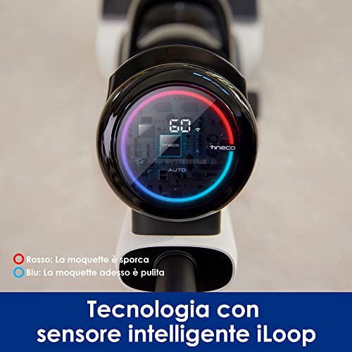 TECNOLOGIA A SENSORE INTELLIGENTE - Dotato di sensore intelligente per la polvere iLoop, Tineco CARPET ONE rileva la quantita' di sporco sulla moquette e applica automaticamente la potenza di aspirazione e il flusso d'acqua ottimali per un processo di pulizia più intelligente ed efficace. Il display a LED mostra in tempo reale il livello di pulizia. Il segnale di colore rosso indica che la moquette è ancora sporca, il colore blu indica quando e' pulita!