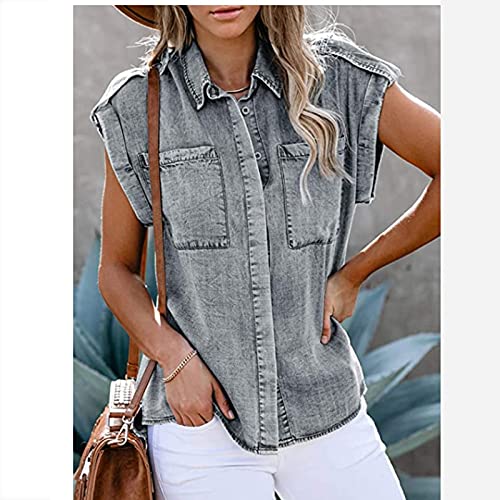 TinFrey Camicia di Jeans Senza Maniche da Donna Camicia Casual con Bottoni Allentati in Denim con Risvolto Casual Camicia Estiva con Tasche