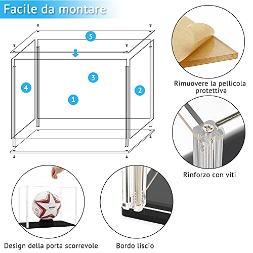 Tingacraft Teca Plexiglass (34,5 x 24,5 x 26 cm) Vetrina Acrilico Espositore per Pallone da Calcio Basket, Modellino