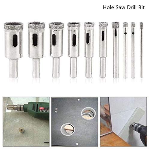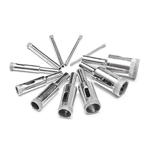 TINGB Set di Punte da Trapano diamantate Set di Punte da 10 Pezzi con Punte da Trapano diamantate 3mm / 4mm / 5mm / 6mm / 8mm / 10mm / 12mm / 14mm / 16mm / 18mm per Marmo Granito ceramico