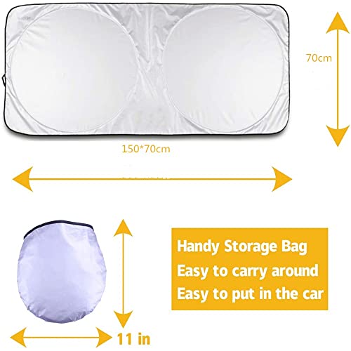 Si adatta alla maggior parte delle auto: il parasole per parabrezza per auto si adatta alle auto con un parabrezza anteriore di circa 27,5 pollici di altezza x 60 pollici di larghezza. Misura il tuo parabrezza prima di acquistare per assicurarti di ottenere la giusta dimensione.