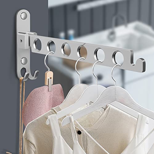 TINIFO Appendiabiti Pieghevole da Parete, Stendino Alluminio da Muro Ripiegabile a 90 gradi per Soggiorno Bagno Balcone Lavanderia (Argento)