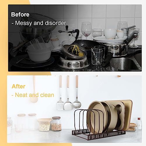 【Facile da montare】Il portapentole include 1 telaio di supporto e 10 divisori. Montaggio facile e conveniente, nessun altro strumento richiesto, solo pochi minuti per assemblare la tua presina preferita.