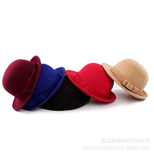TININNA Autunno e Invernale Moda Caldo Elegante Bowknot Classici Bombetta Cappello di Lana in Feltro Berretto per Le Signora Donne Nero