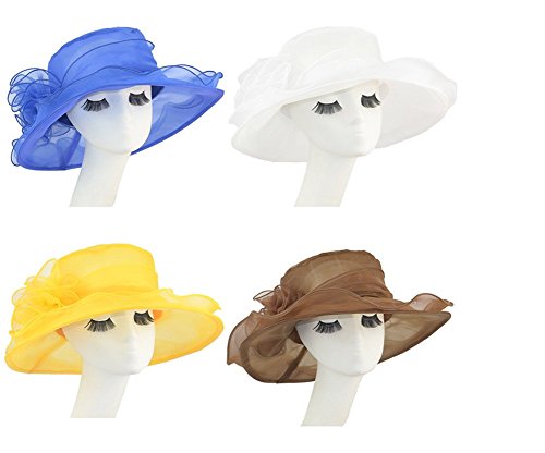 TININNA Donne Large Wide Brim Fiore Organza Cappello Cappelli di Spiaggia Chiesa Festa di Matrimonio Cappello Bianco