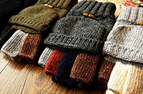 TININNA - Guanti da uomo invernali termici caldi lavorati a maglia in lana a mezza dita con guanti