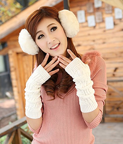 TININNA Nuovo Arrivo Inverno Cable Knit Lavorato a Maglia Lungo Senza Dita Guanti Braccio Scalda per Donne Ragazze Bianco