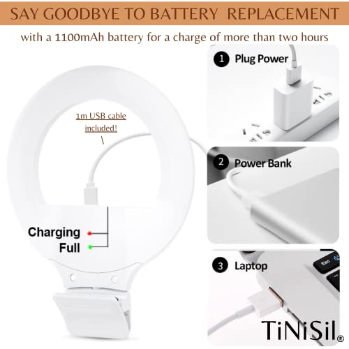 TiNiSil Luce Ad Anello Per Videoconferenza, Webcam e Computer Portatile, Selfie Ring Light Touch Con Clip Gommata, 3 Tonalità, Rotazione a 360° e Inclinazione a 55° Per Trucco, Video, Foto e Lettura