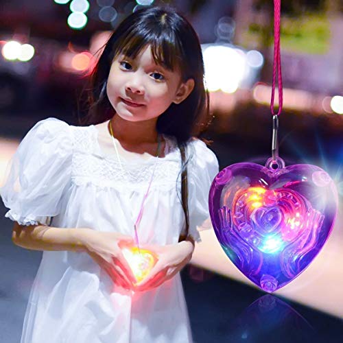 Tinksky Colorata collana in plastica con ciondolo con luce a LED, 8 pezzi (4 ciondoli a forma di stella e 4 a forma di cuore)